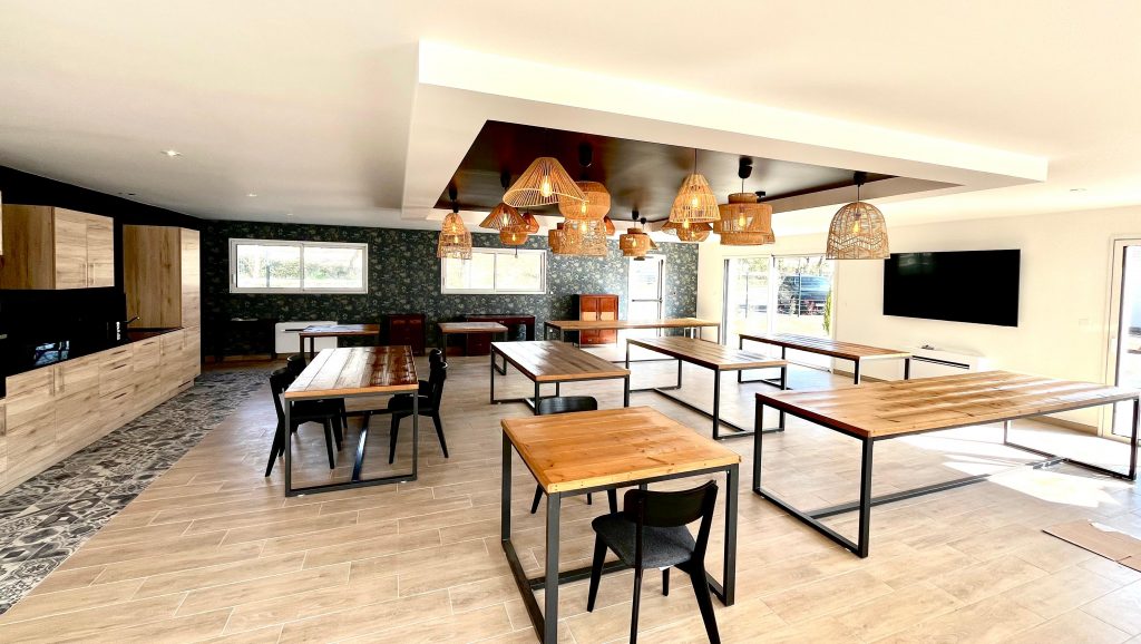 – une salle commune de 120m², avec sa bibliothèque, sa télévision et sa cuisine équipée